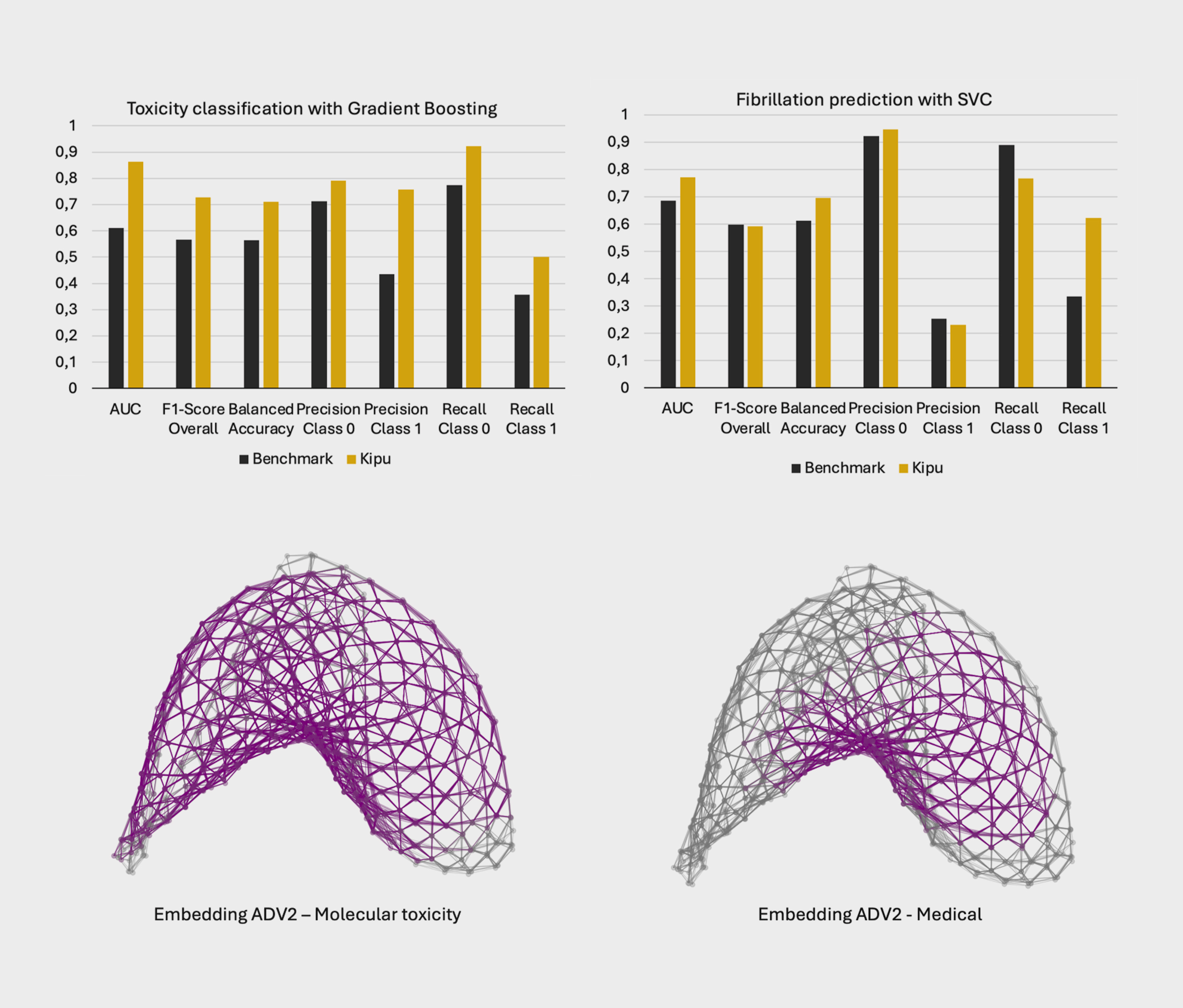 This quantum feature mapping approach is not limited to the presented use-cases—it can be applied across a wide range of domains in science, technology, and industrial applications. One of the most promising aspects of this novel Kipu Quantum technology is its compatibility with many existing classical models: when classical performance improves, applying quantum feature mapping on top consistently leads to further gains. Utilizing current quantum processors with demonstrated quantum supremacy capacities to tackle real-world problems is a crucial step toward achieving practical quantum advantage now, as they unlock the full potential of current quantum computers in meaningful applications. We are excited about the potential of these tools and warmly invite researchers, practitioners, and enthusiasts to connect with us if they are interested in exploring our datasets or models to further validate, enhance, or build upon our findings.