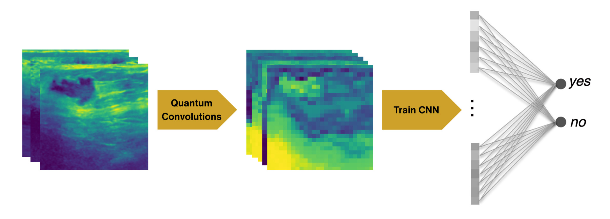On benchmark datasets for breast cancer classification, our approach has demonstrated significant improvements over state-of-the-art techniques. Compared to leading classical algorithms, our method reduced training parameters by a factor of 1,000, improved the Area Under Curve (AUC) by 2.72%, and increased accuracy (ACC) by 1.85% when using analog quantum convolutions on D-Wave Advantage2. The reduction in the number of parameters is achieved by replacing parameterized convolutions with non-parameterized quantum convolutions. To this end, we implement parallel convolutions, each using 10s of qubits, on a 1200+ qubit chip. For higher-resolution images, we estimate to use convolutions requiring 100s of qubits, bringing us to the level of quantum advantage in this use case.